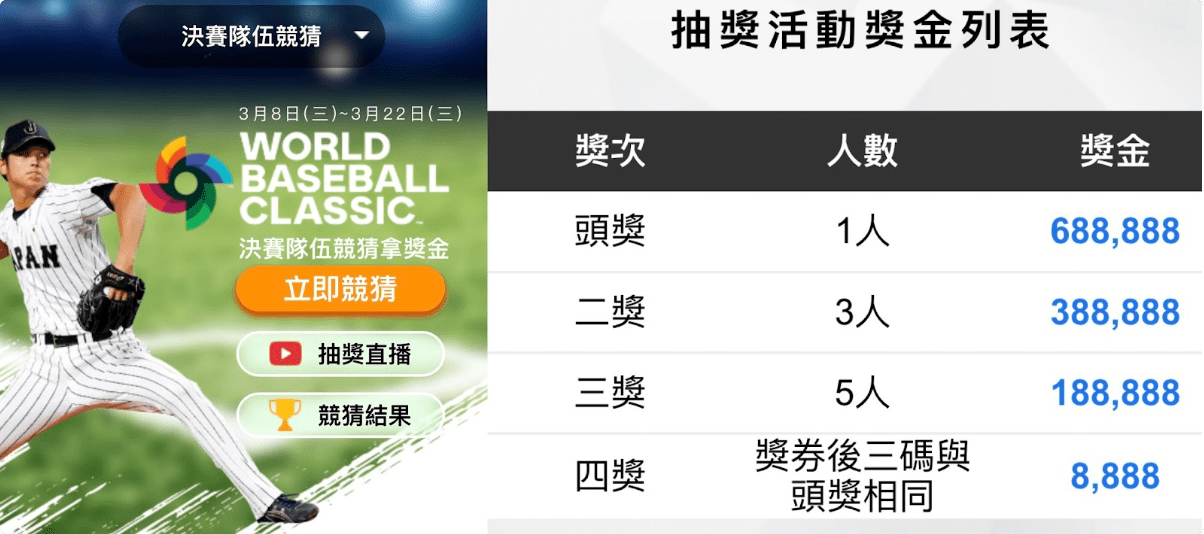 3. 棒球彩票:棒球彩票主要在日本、韓國等地比較流行,投注方式包括猜輸贏、猜得分等。