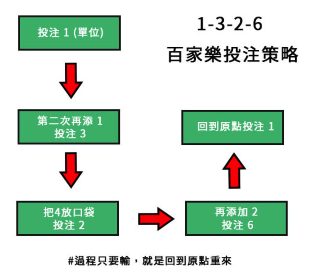 先讓我們快速介紹一下1326百家樂投注法的方式: