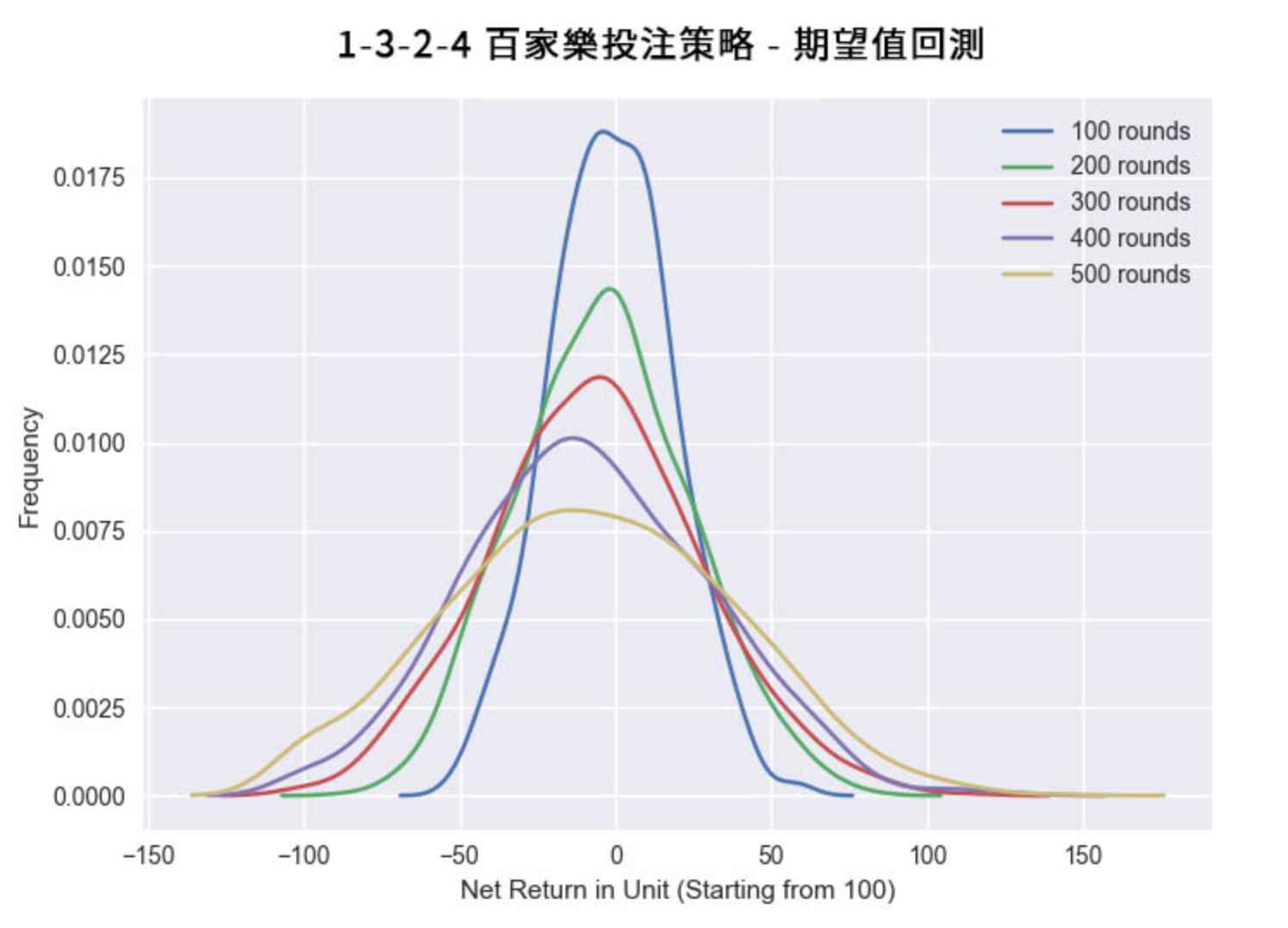如果我們透過期望值的角度來觀察,1324投注策略在第三個步驟可能會稍微不太划算,但整體來看,這仍然是一個非常出色的策略。