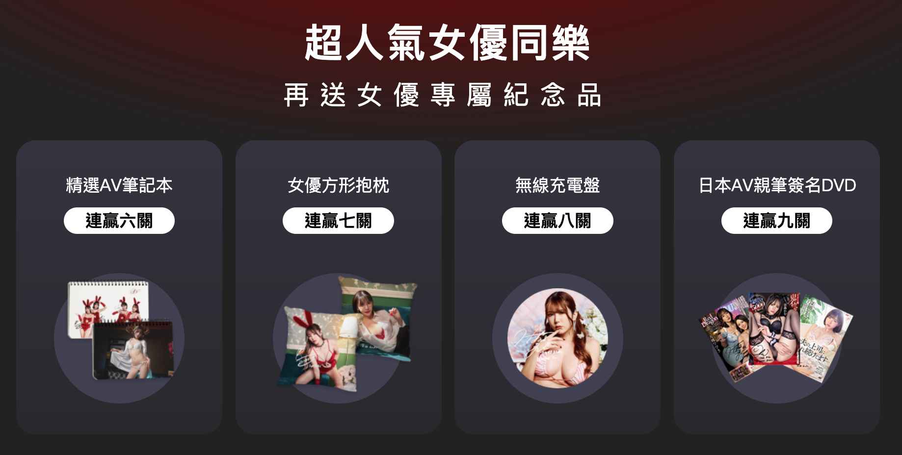 KU百家樂不僅提供了極致的遊戲體驗,更令人期待的是,KU百家樂與超人氣AV女優同樂。無論您能夠連贏六關、連贏七關、連贏八關還是連贏九關,都有機會參加這個獨特的活動。當您達成連贏的成就時,不僅可以贏得令人讚嘆的大獎,還將獲得女優專屬紀念品。這是一個難得的機會,將您的遊戲體驗提升到一個全新的層次。