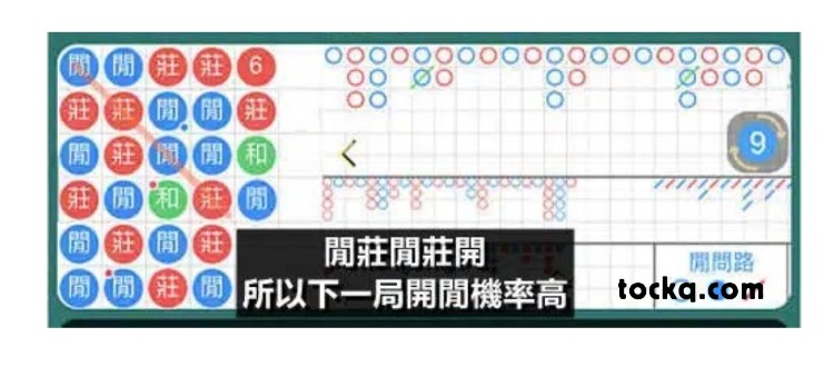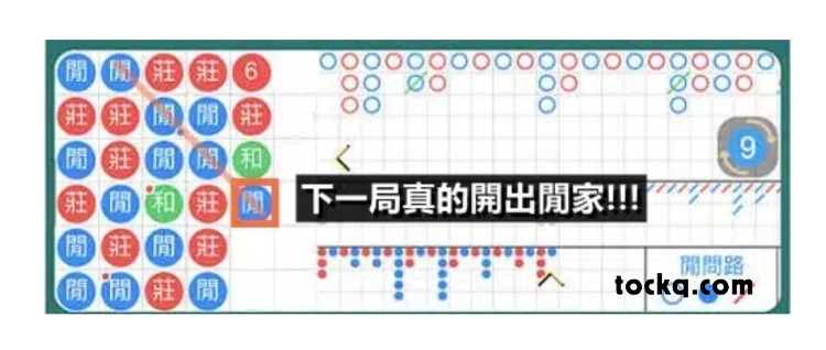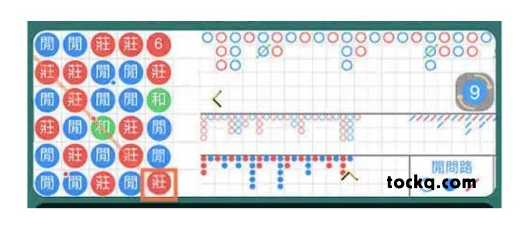 接著再進行下一局,依舊使用斜角打法,沿著斜線觀察規律:發現連續出現了莊莊和莊,顯示莊家的比例相當高,因此預測下一局開出莊家的機率極大。果不其然,這局牌局確實開出了莊家,再次驗證了斜角打法的準確性!