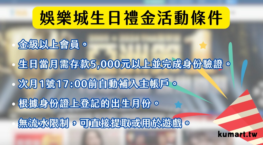 2.生日當月的存款總金額必須達到5,000元以上,且需完成身份驗證,這樣就無需進行額外申請。