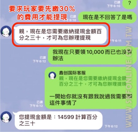 結果沒多久開始洗腦我參加積分賽,一次叫我投注30萬,催促我加本金,但我真的不想,我跟天菜說再讓我多熟悉遊戲再加本金,所以天菜凹不過我叫我趕快去領錢到虛擬帳戶,我就去找客服說要領錢,結果客服跟我說要繳30%稅金才能領錢,於是與他們客服吵了起來,因為根本不合理,跟我說第一次要繳稅就又不用,我又不白痴,有國家稅金只繳一次的嗎?最後,客服知道吵不過我,就關閉了我的帳戶,他們以為我被他們騙了,因為我前前後後總共賺了8萬5,但我其實先已經把一部分錢領出來,根本沒有賠,我還反詐騙了詐騙黑網博弈!