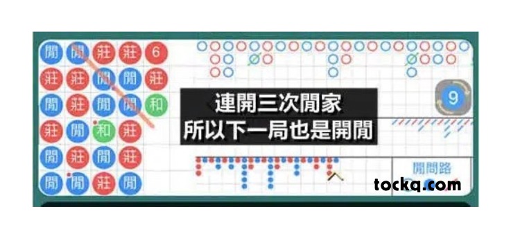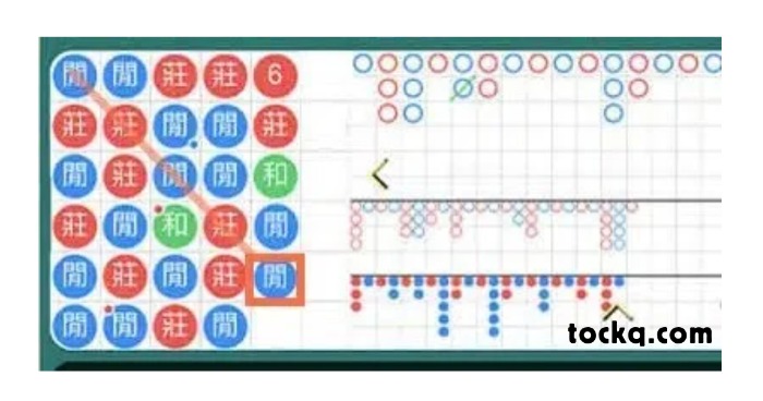 接著再進行下一局,依舊使用斜角打法,沿著斜線觀察規律:發現連續出現了莊莊和莊,顯示莊家的比例相當高,因此預測下一局開出莊家的機率極大。果不其然,這局牌局確實開出了莊家,再次驗證了斜角打法的準確性!